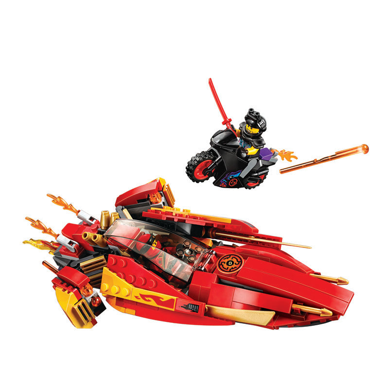 - Play out a high-speed chase on water and land with this action-packed NINJAGO Katana V11 set, featuring Fire Ninja Kai’s Katana V11 boat, with speed and attack modes, foldout boosters and spring-loaded shooters.