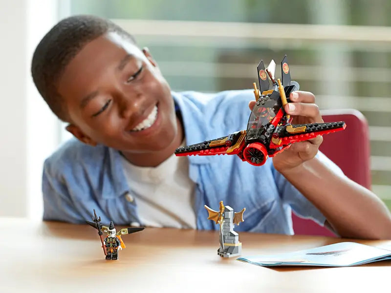 - Pilot NINJAGO Destiny’s Wing with ninja Kai and battle Jet Jack for the Dragonbone Blade! Destiny’s Wing features an opening minifigure cockpit and is weaponized with both spring-loaded and stud shooters.