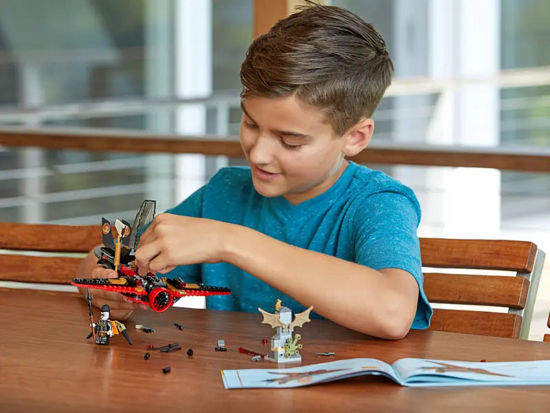 - Build the awesome Destiny’s Wing jet plane, featuring an opening cockpit, spring-loaded/stud shooters and detachable katanas, then team up with Kai to battle Jet Jack for the Dragonbone Blade.