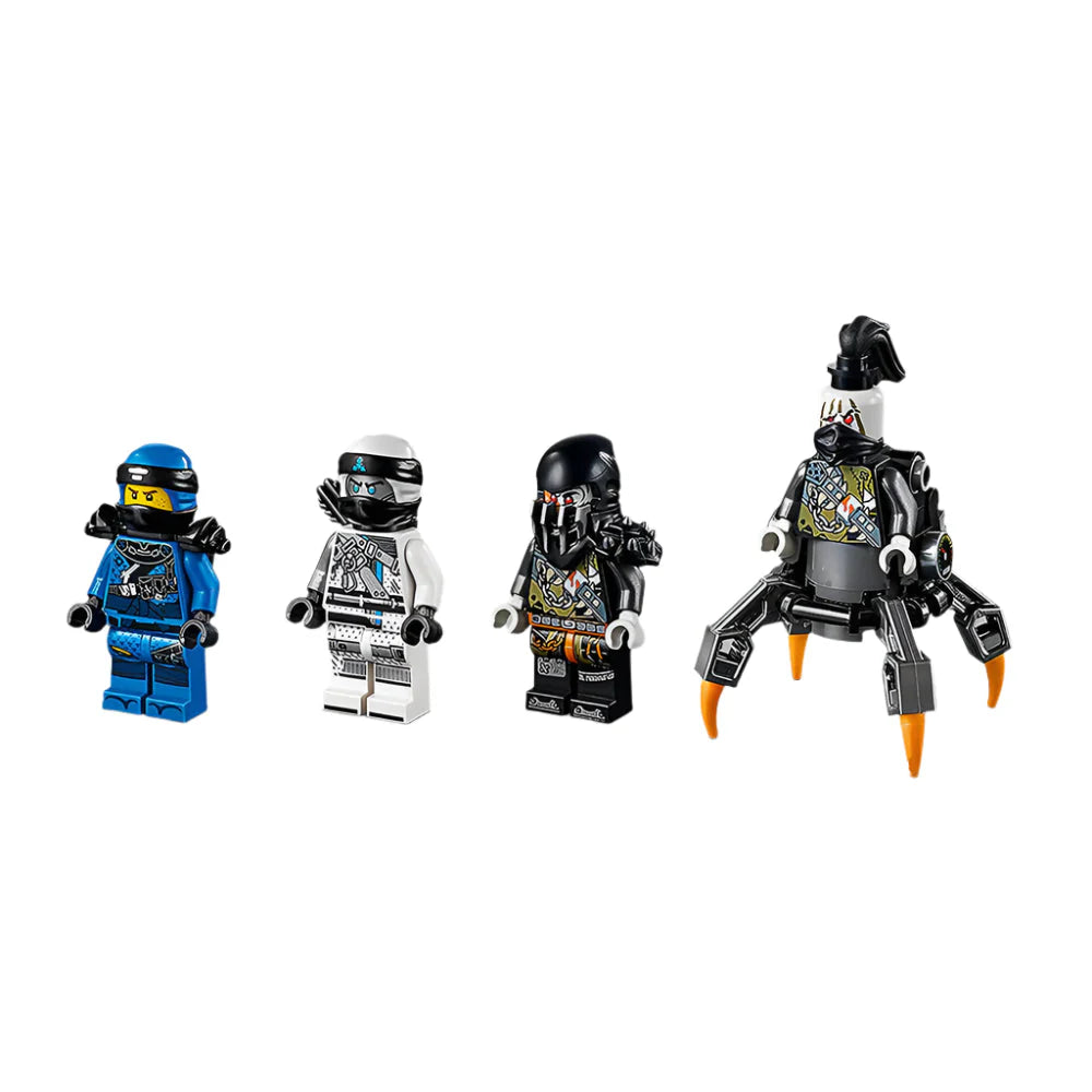 - This ninja playset is built with 493 pieces and includes 4 minifigures: Zane, Jay, Daddy No Legs and Muzzle and features a pedestal to display the Dragon Chestplate. It also includes collectible ninja weapon pieces like Dragonbone Blade ninja sword.