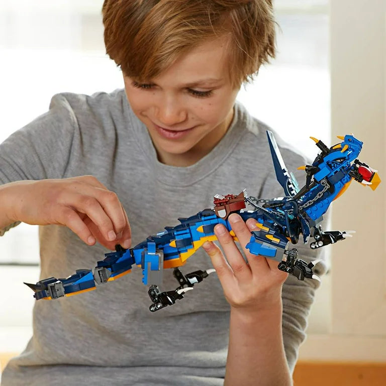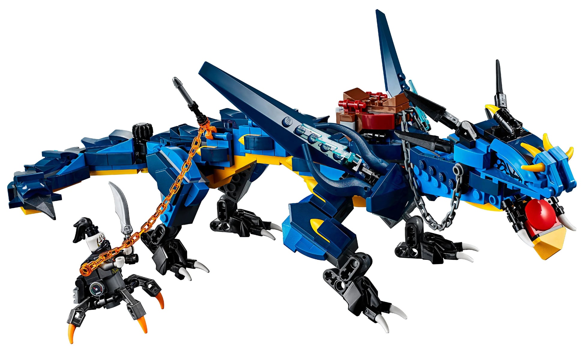 - Boys and girls will love building the cool, blue Stormbringer the Lightning Dragon set, featuring ‘lightning bolt’ shooters and a swiping tail. Kids can roleplay riding the dragon with their minifigures and act out epic ninja warrior battles.