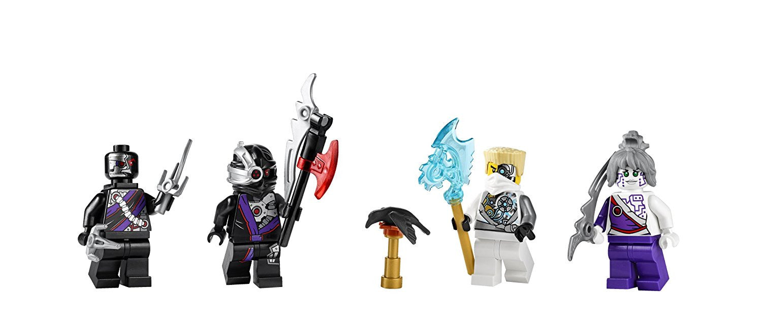- Includes 4 mini figures with weapons: Zane, Pixel and 2 Nindroids