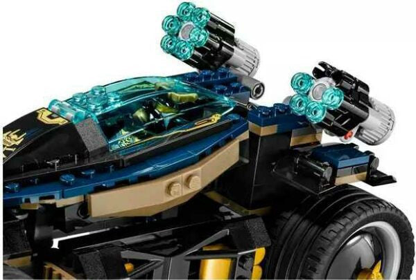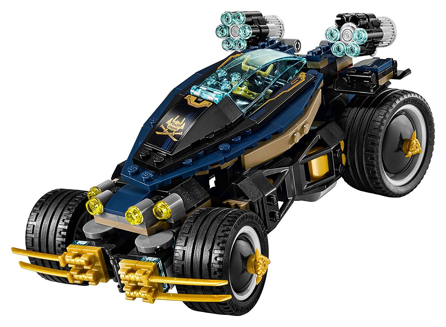 - The armored Samurai VXL vehicle features big rubber wheels, dual six-stud rapid shooters, a special tilting four-wheel-drive steering system and golden ninja blade elements.