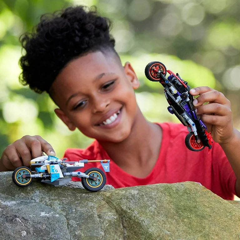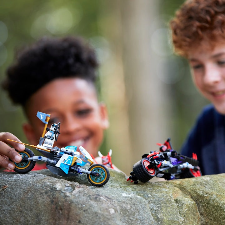 - Match Zane’s bike against Mr. E’s Oni Bike and battle for the Oni Mask of Vengeance, with this exciting NINJAGO Street Race of Snake Jaguar set.