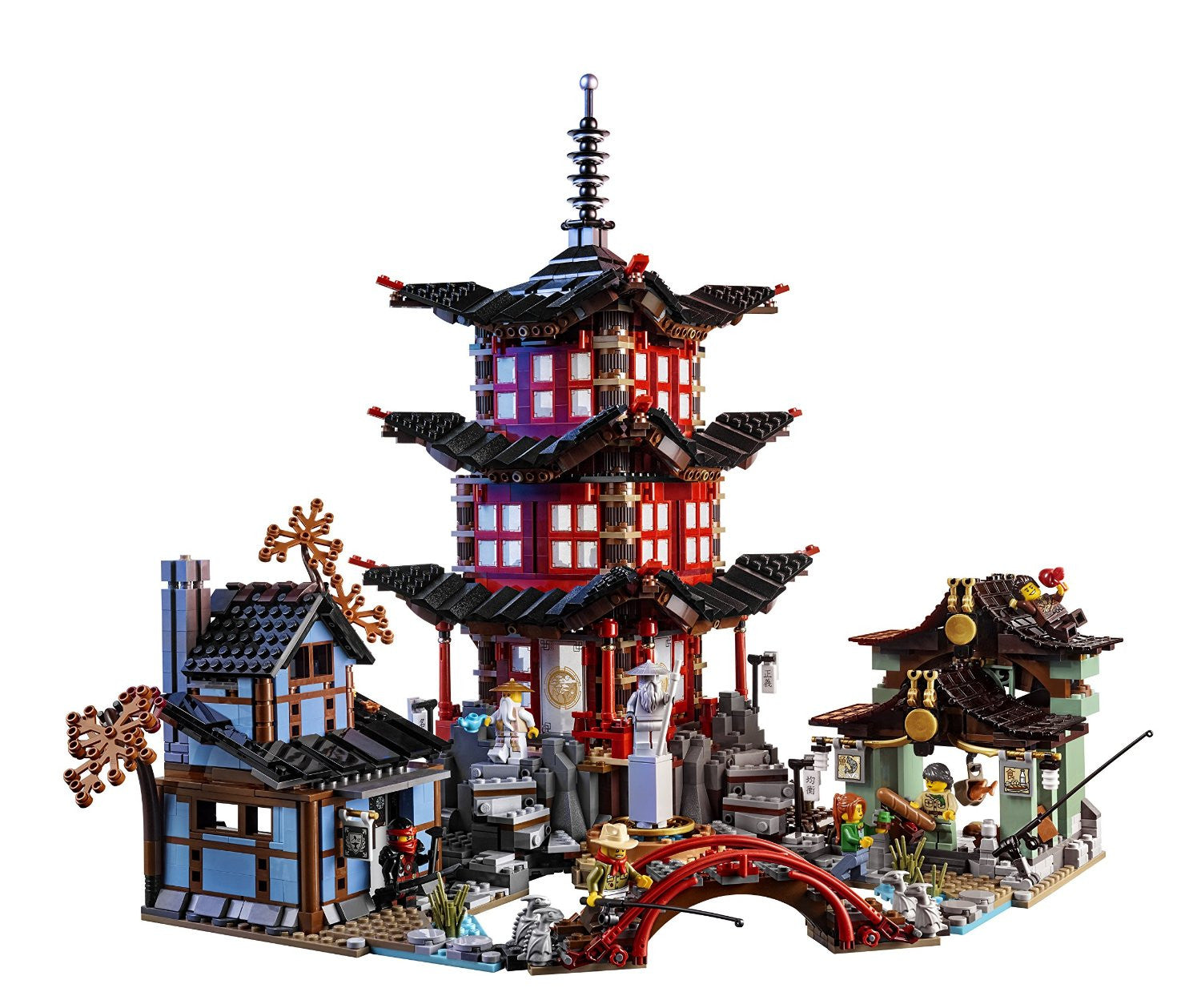 - Includes 12 minifigures with assorted weapons: Lloyd, Kai, Jay, Zane, Cole, Nya, Wu, Misako, Dareth, Postman, Jesper and Claire.