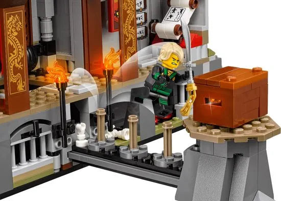 - Join a ninja mission to infiltrate THE NINJAGO MOVIE Temple of The Ultimate Ultimate Weapon. The temple features a secret entrance, trapdoor function, rock-dropping and dynamite-dropping functions, blade-shooting and chopping-sword traps, dungeon, a hanging cage to capture a minifigure inside, and a pull-out section with poles for minifigures to leap between to reach the treasure chest.
