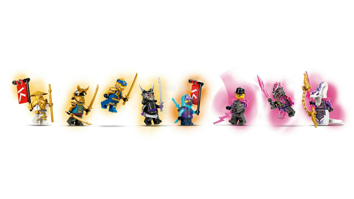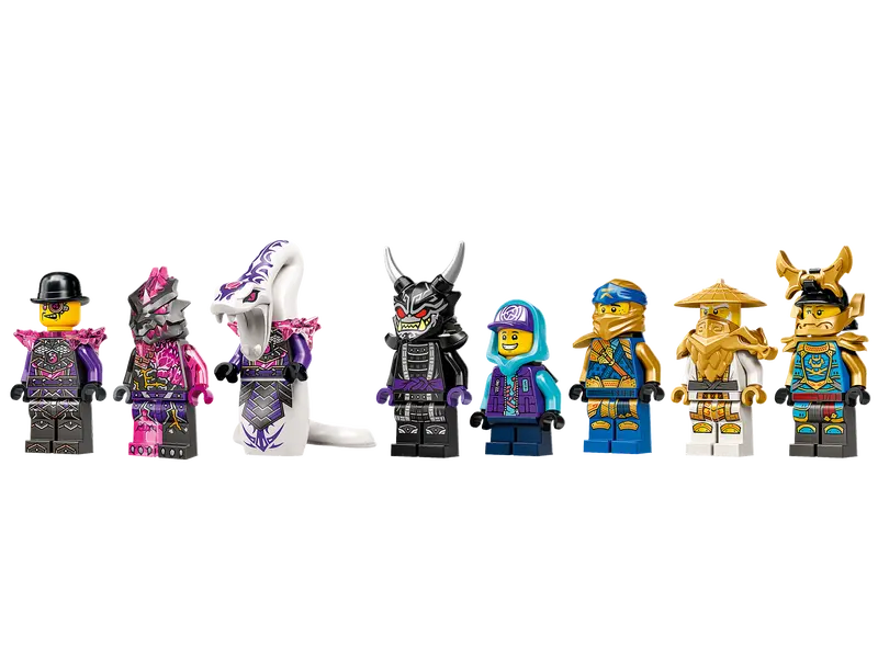 - Includes Samurai X Nya, NINJAGO Golden Jay, Master Wu, Oni Garmadon, Lil’ Nelson, General Pythor, The Mechanic and Vengestone Warrior.