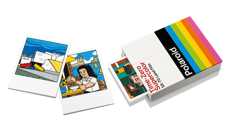 - Buildable Time-Zero Supercolor SX-70 Land Film pack – The pack contains 3 illustrated ‘photos’ of Polaroid inventor Edwin H. Land, House and the fan designer’s sister who inspired this creation.