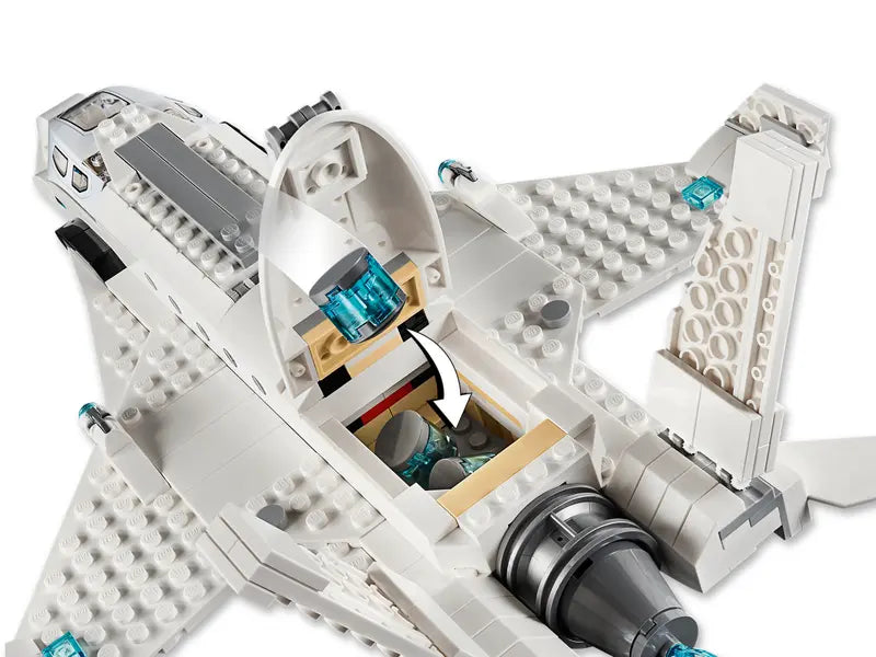 - Build the Stark Jet featuring stud shooters, adjustable wings and an opening hatch function to drop bombs or let Spider-Man hang from this superhero vehicle, then destroy 2 stud-shooting drones!