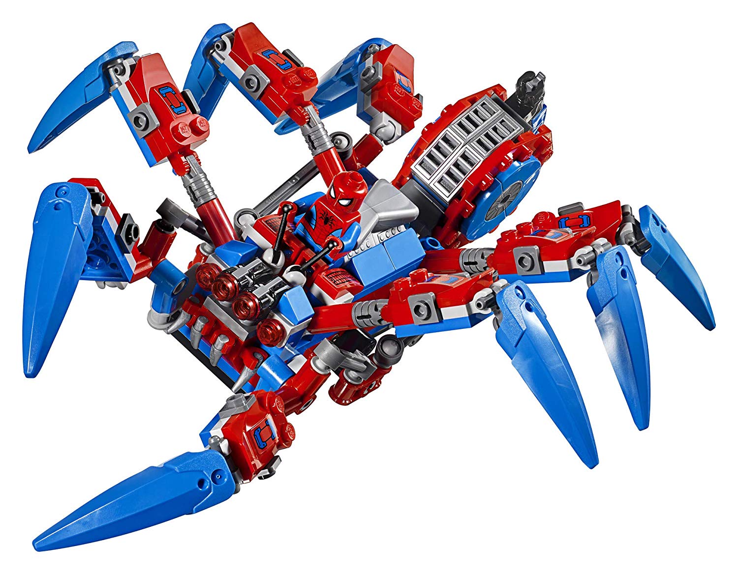- Build the Spider-Man Spider Crawler with a lifelike spider-crawling function, 2 stud shooters, and a spider tech/web shooter and battle Spider-Man’s enemies Vulture and Sandman for the stolen diamonds.