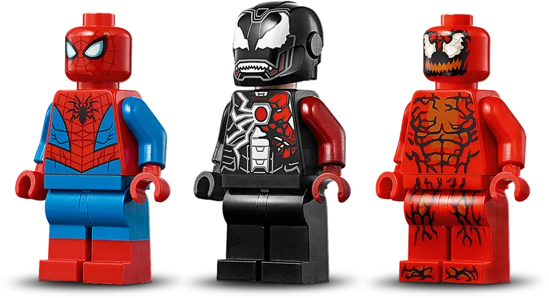 - The Venom Crawler has 8 movable legs and a rear stud shooter. Spider-Man's buggy has 2 stud shooters. Set includes 3 minifigures: Spider-Man, Carnage and the Iron Man/Venom hybrid, Iron Venom.