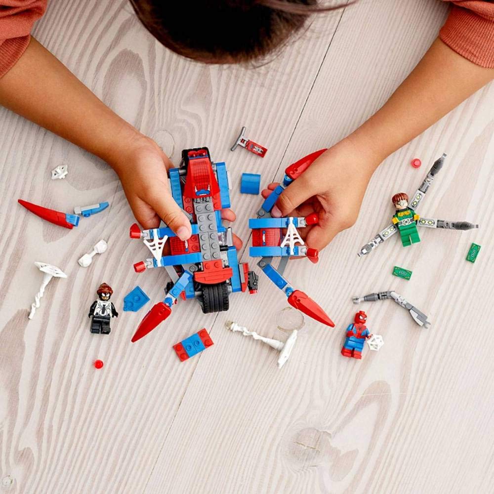 - With 3 minifigures, kids can role-play as Spider-Man, Spider-Girl and Doc Ock in an action-packed confrontation, plus Spider-Man's motorcycle splits in 2 to create a high-speed bike and a giant walking spider!