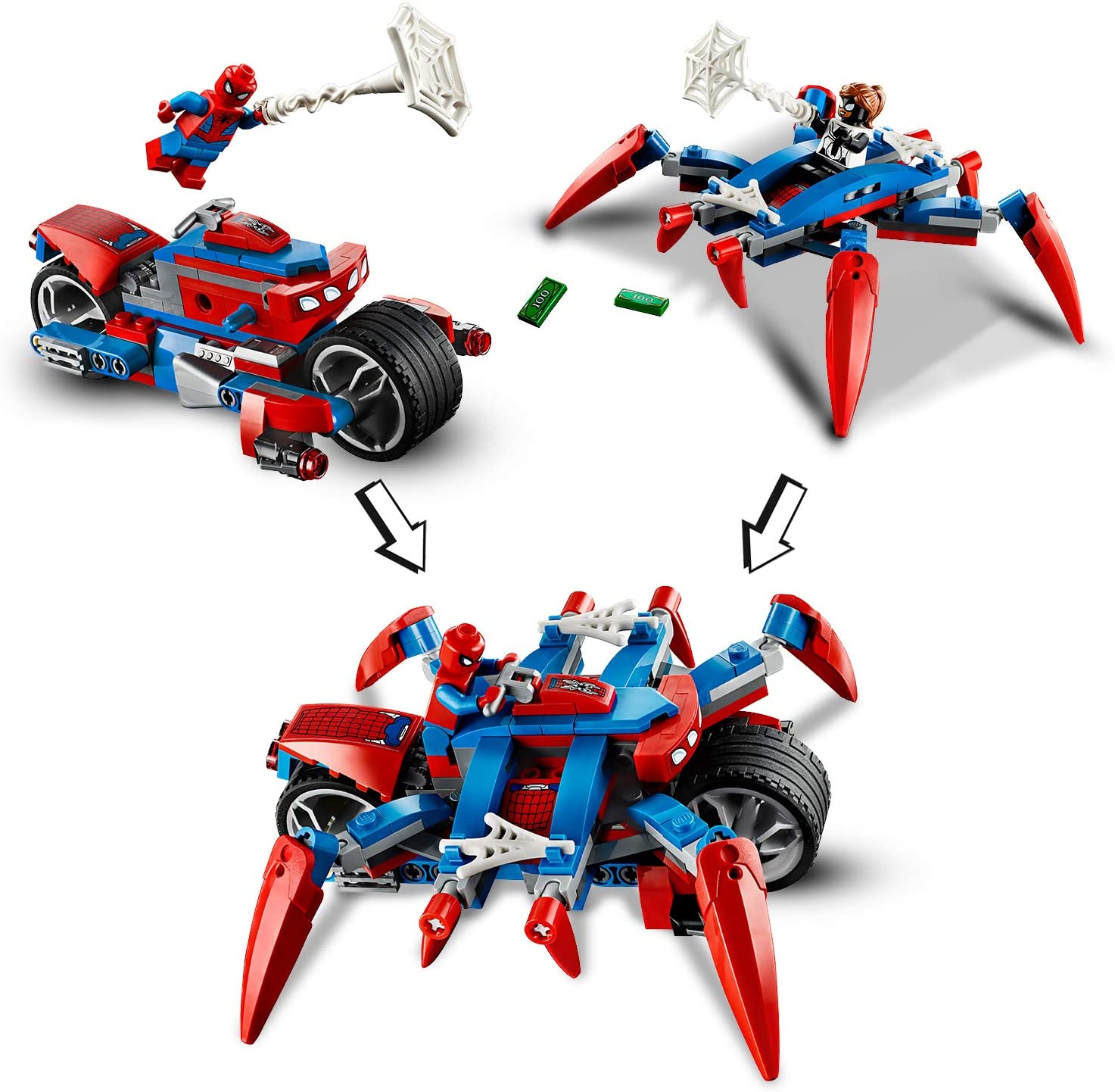 - This Spider-Man 2-in-1 set sparks imagination, offers endless build-and-play fun and is an action-filled holiday, birthday or anyday gift for kids ages 6+ who love Spider-Man, superheroes and motorcycles.