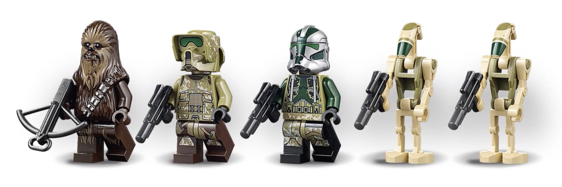 - This Star Wars building toy includes 3 Star Wars minifigures: Chewbacca, Clone Commander Gree and a Kashyyyk Clone Trooper minifigures, and 2 Kashyyyk Battle Droid figures.