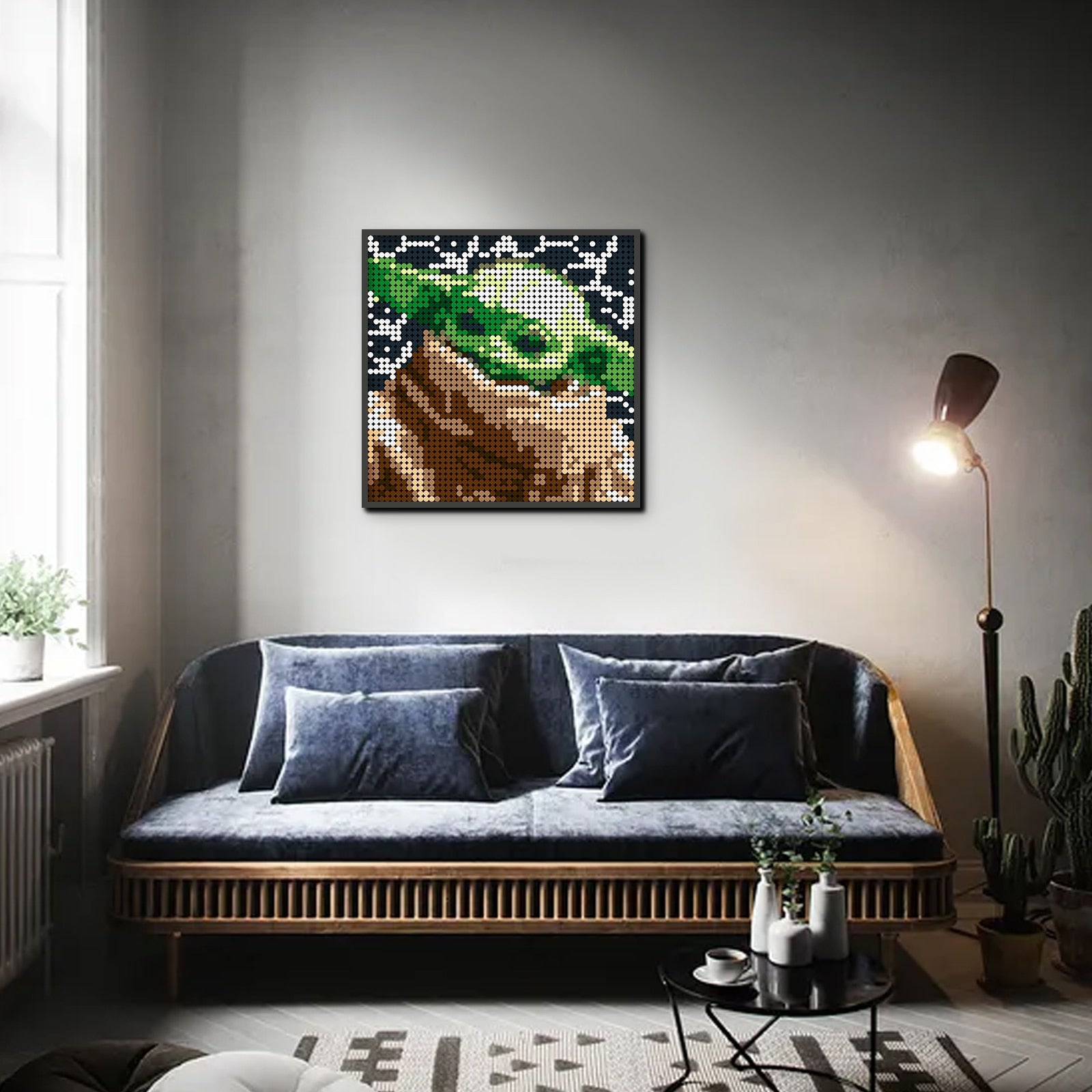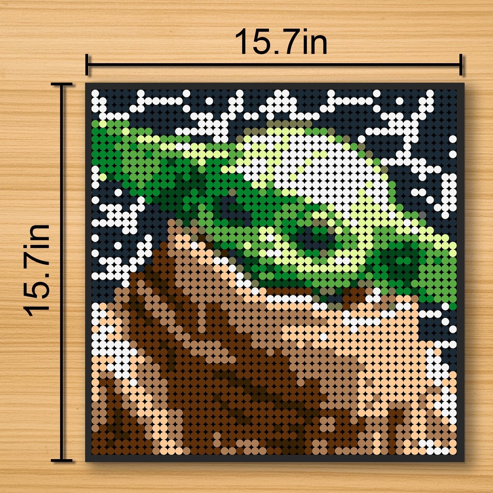 - Star Wars Grogu Pixel Art measures 15” (38.4cm) wide, 15” (38.4cm) long and 0.7” (2cm) depth.