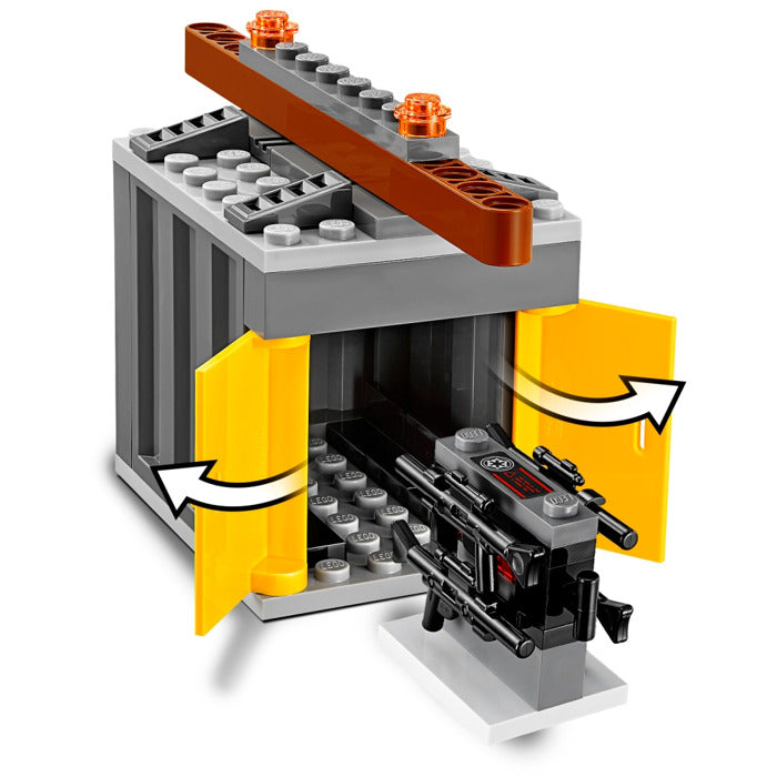 - Become a cargo master with the Star Wars Imperial AT-Hauler. This detailed vehicle features an opening minifigure cockpit, platform underneath, rotating lifter arms for flight and landing modes, and movable hooks on the end for latching onto the included buildable cargo container with 4 blaster rifles inside.