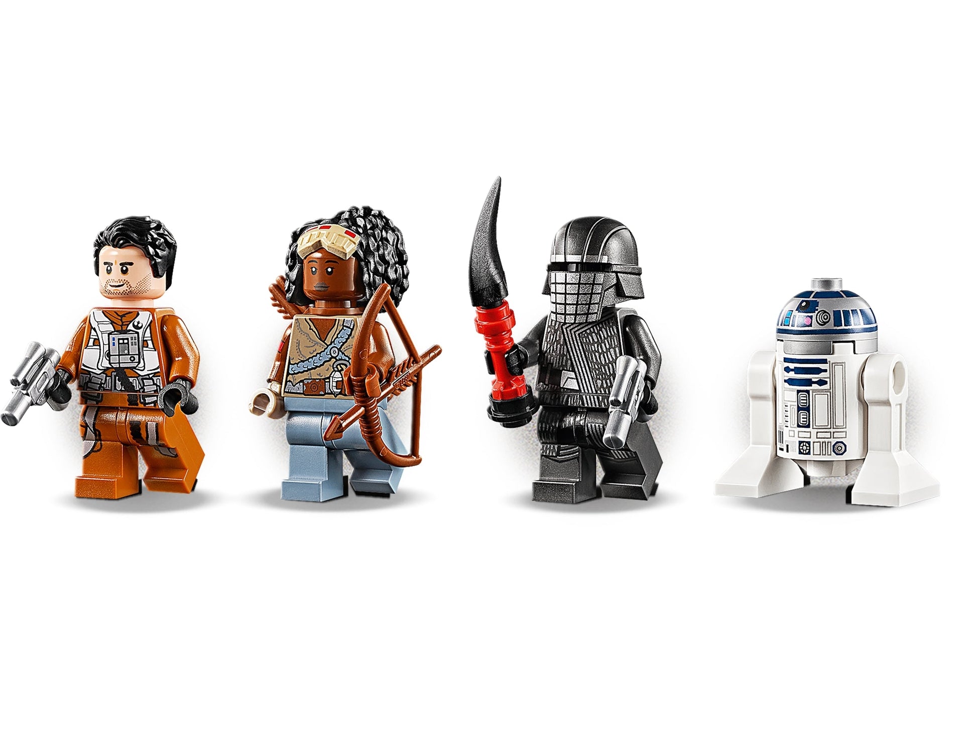 - Includes an R2-D2 droid plus 3 Star Wars character minifigures Poe Dameron, Knight of Ren and Jannah with new-for-January-2020 features, plus blasters, a bowcaster and more