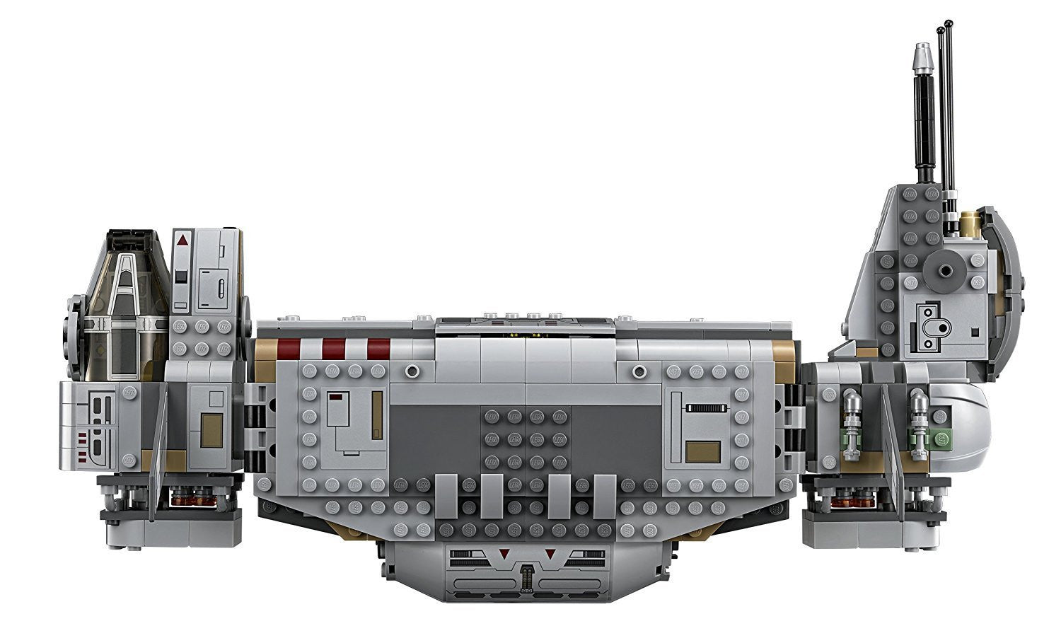 - This version of the starship featured in Star Wars The Force Awakens has opening top hatches and cockpit, a lowering ramp, space for 4 minifigures inside, as well as dual spring-loaded shooters.