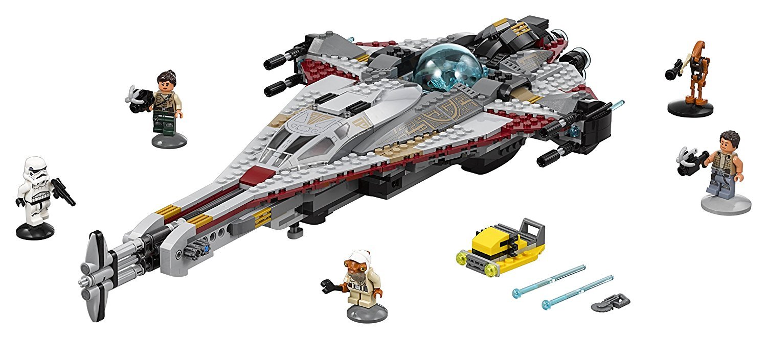 - Features a lift-off cockpit canopy with space for three minifigures and R0-GR, a transparent opening dome, two spring-loaded shooters and a flip-out battering ram