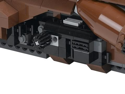 - Carrier vehicle stores in the back, and top opens to reveal pilot cabin and steering controls.