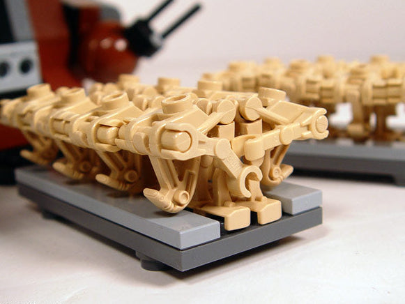 - Opening its hatches, it extends its hidden storage rack to deploy a legion of deadly battle droids onto the battlefield.