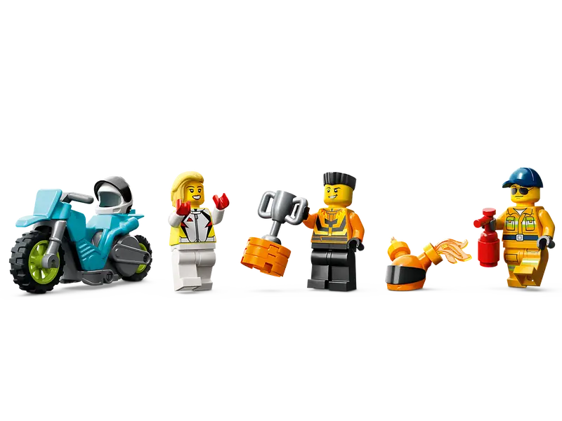 - This epic stunt challenge set features 3 City minifigures: 2 Stunt drivers and a daring truck driver for kids to role-play awesome stunts.