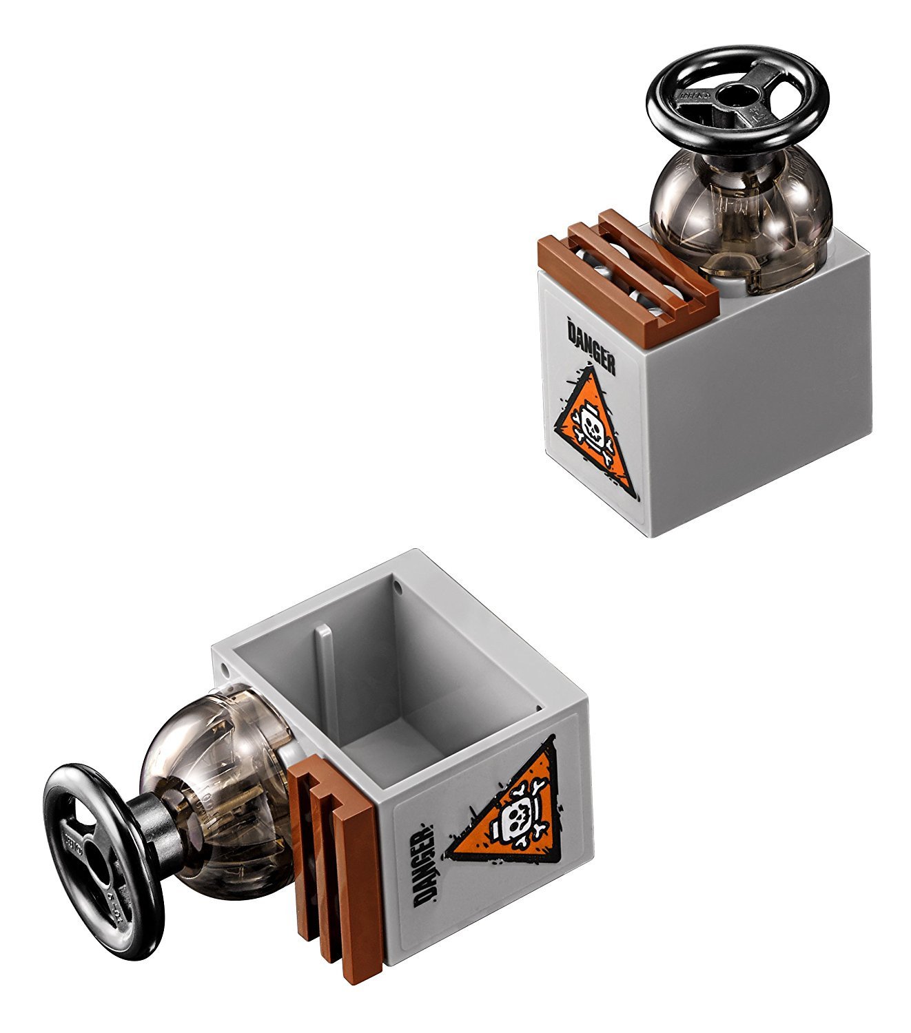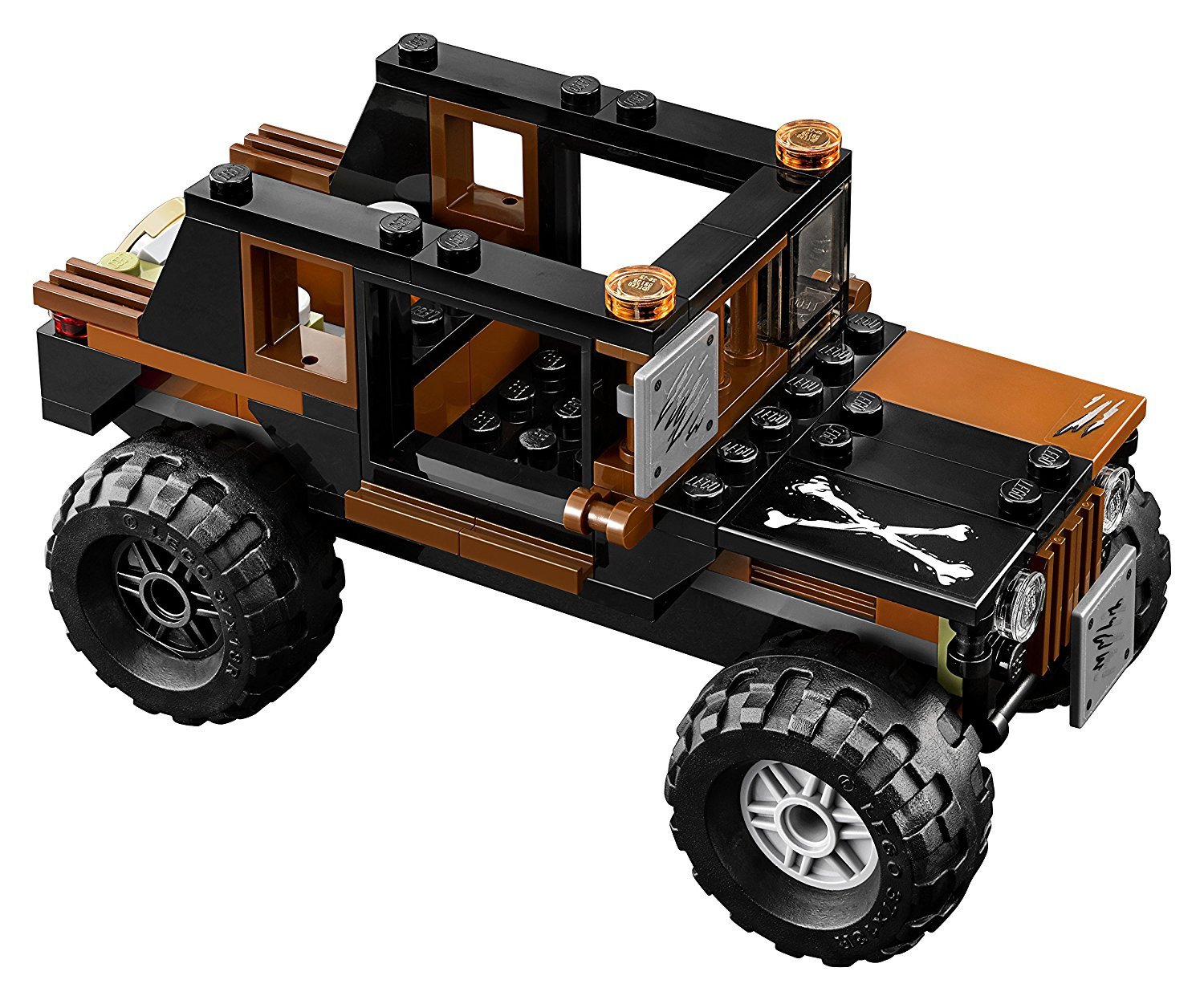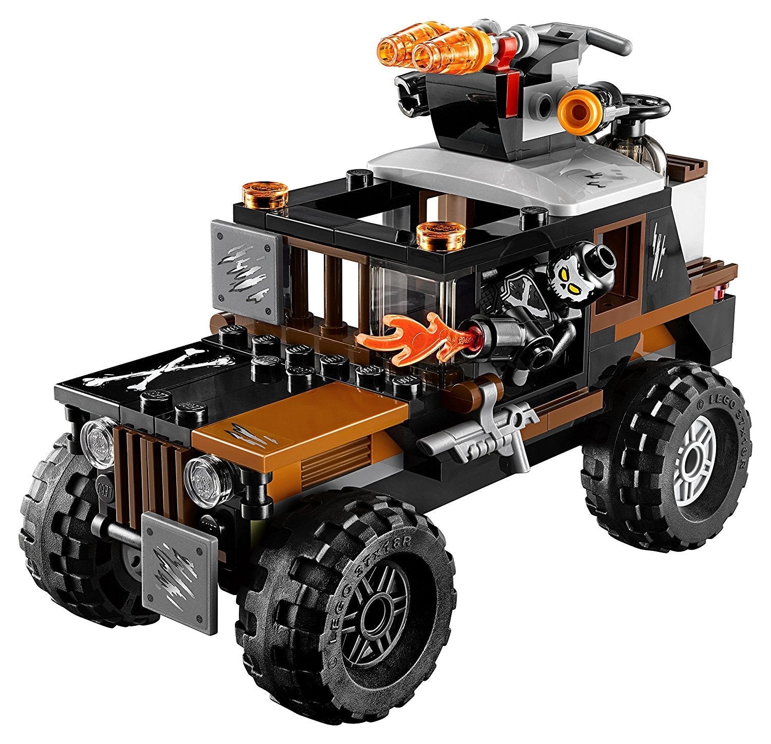 - Crossbones' escape truck features big wheels, a removable roof with 2 stud shooters and handlebars for a minifigure to hold, rear storage space with explode function, storage container, toxic case element, plus Crossbones decoration.