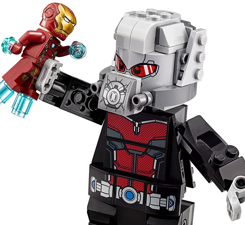 - Includes 6 minifigures: Captain America, Winter Soldier, Scarlet Witch, Iron Man, War Machine and Agent 13, plus an Ant-Man microfigure and a buildable Giant Man figure.