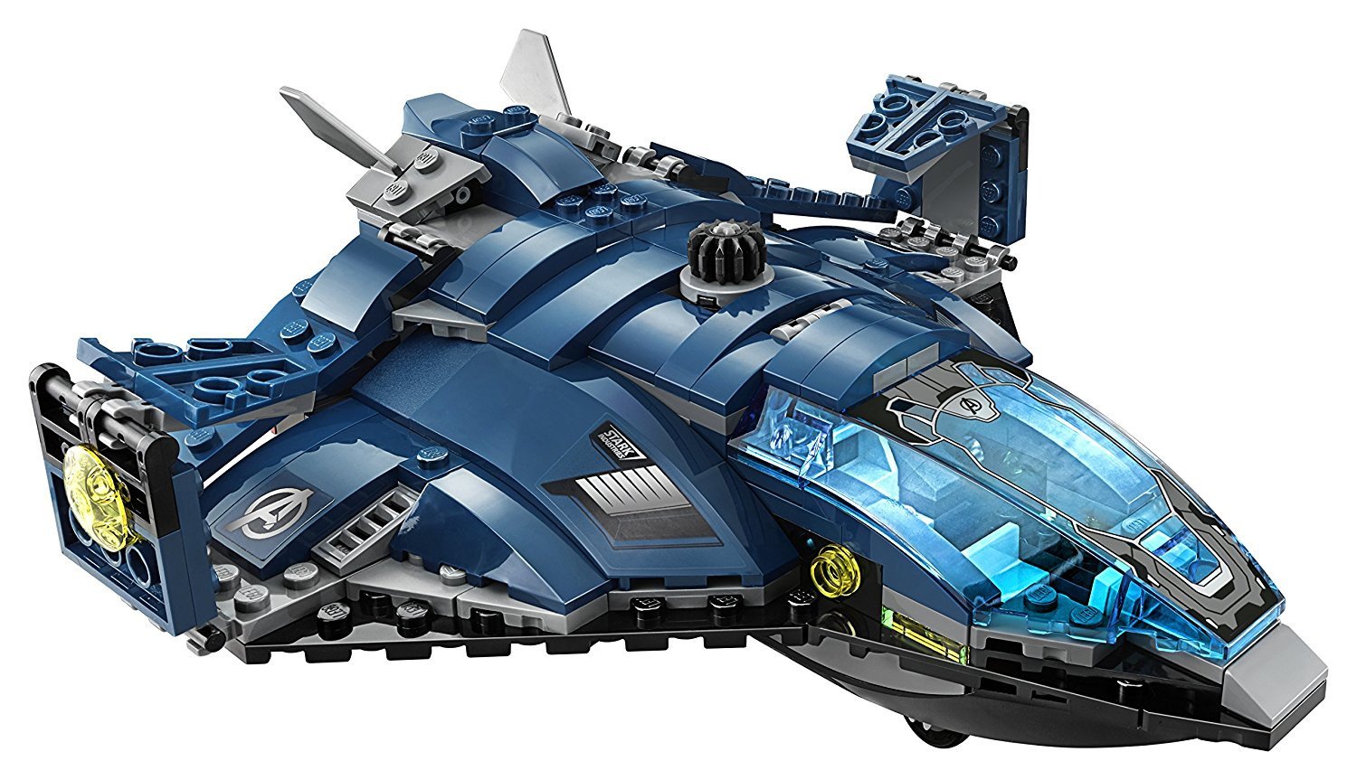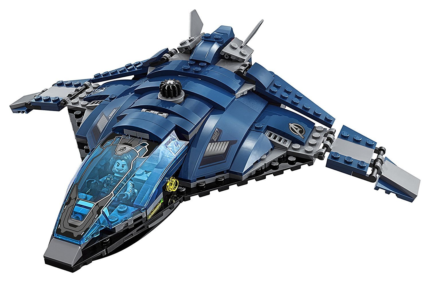 - The Quinjet also features an opening dual cockpit, foldout wings for flight and landing modes and an opening rear hatch with a rope for a minifigure to grab onto.