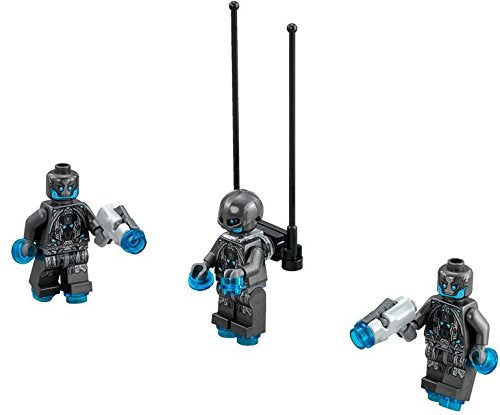 - Includes 4 minifigures with assorted weapons and accessories: Ultron Sentry Officer, 2 Ultron Sentries and Iron Man MK45.