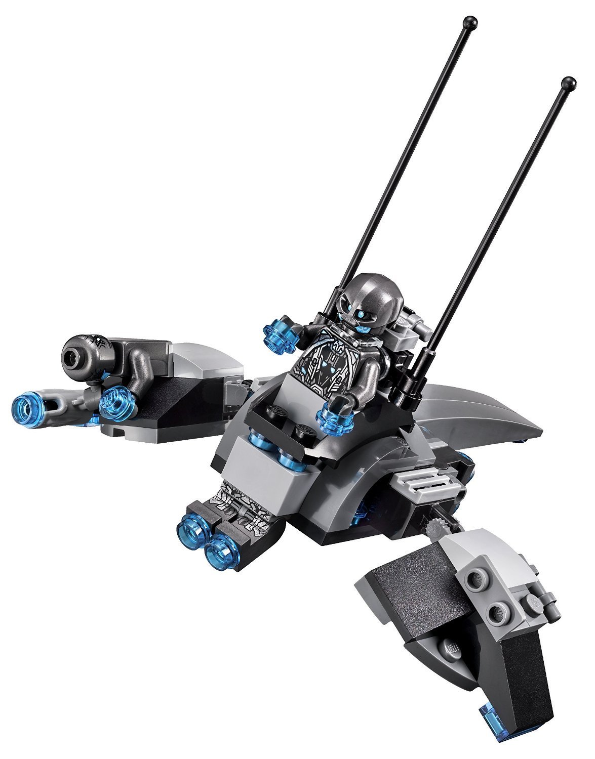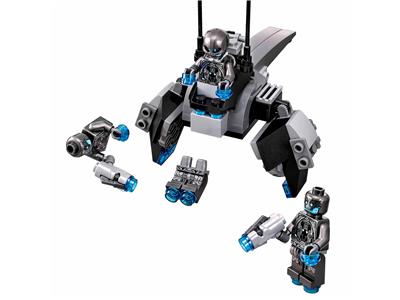 - Accessories include Iron Man's iconic helmet, thrusters and Super Jumper, 2 stud shooters and the Ultron Sentries' thrusters.