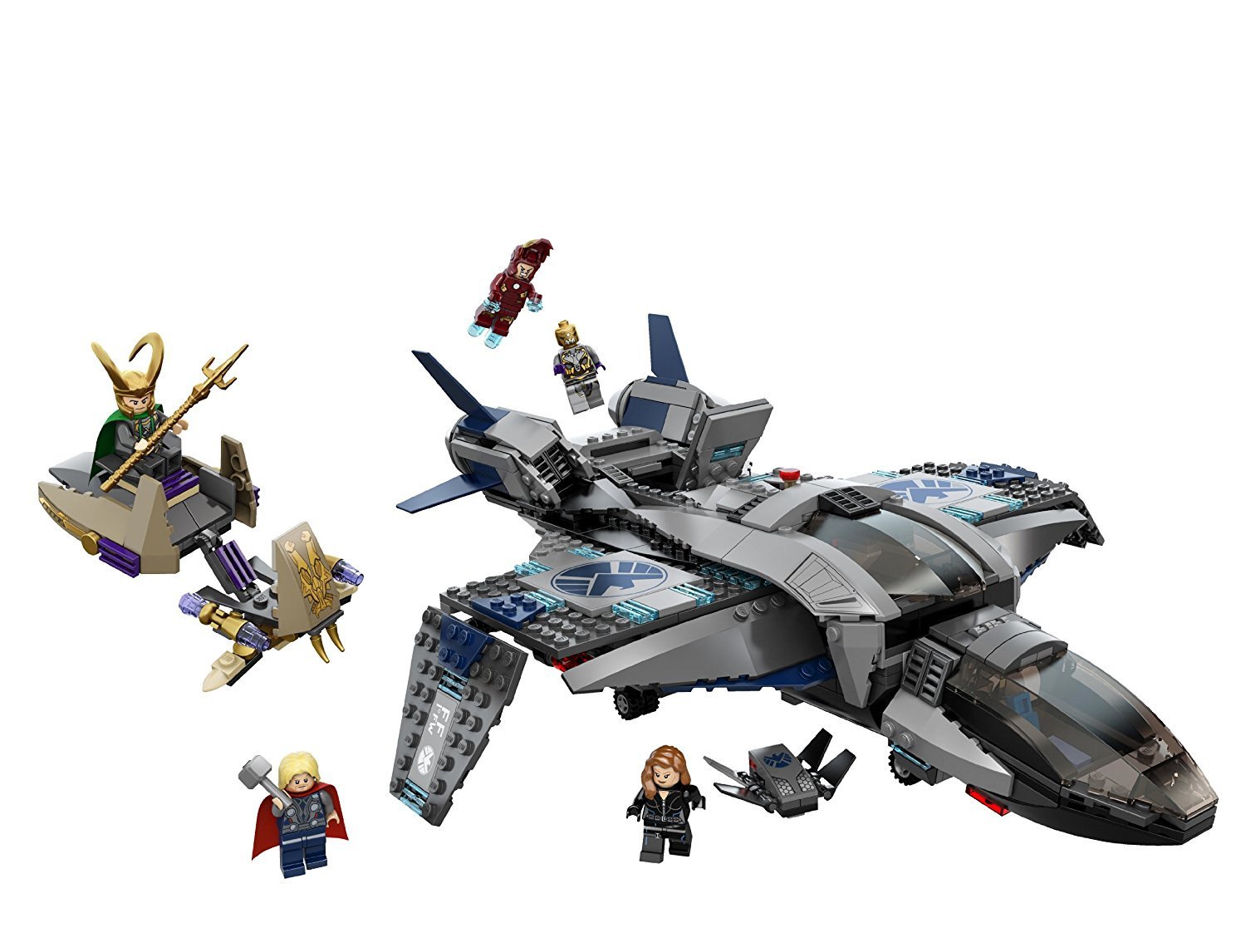- Includes 5 minifigures: Thor, Iron Man, Black Widow, Loki and foot soldier
