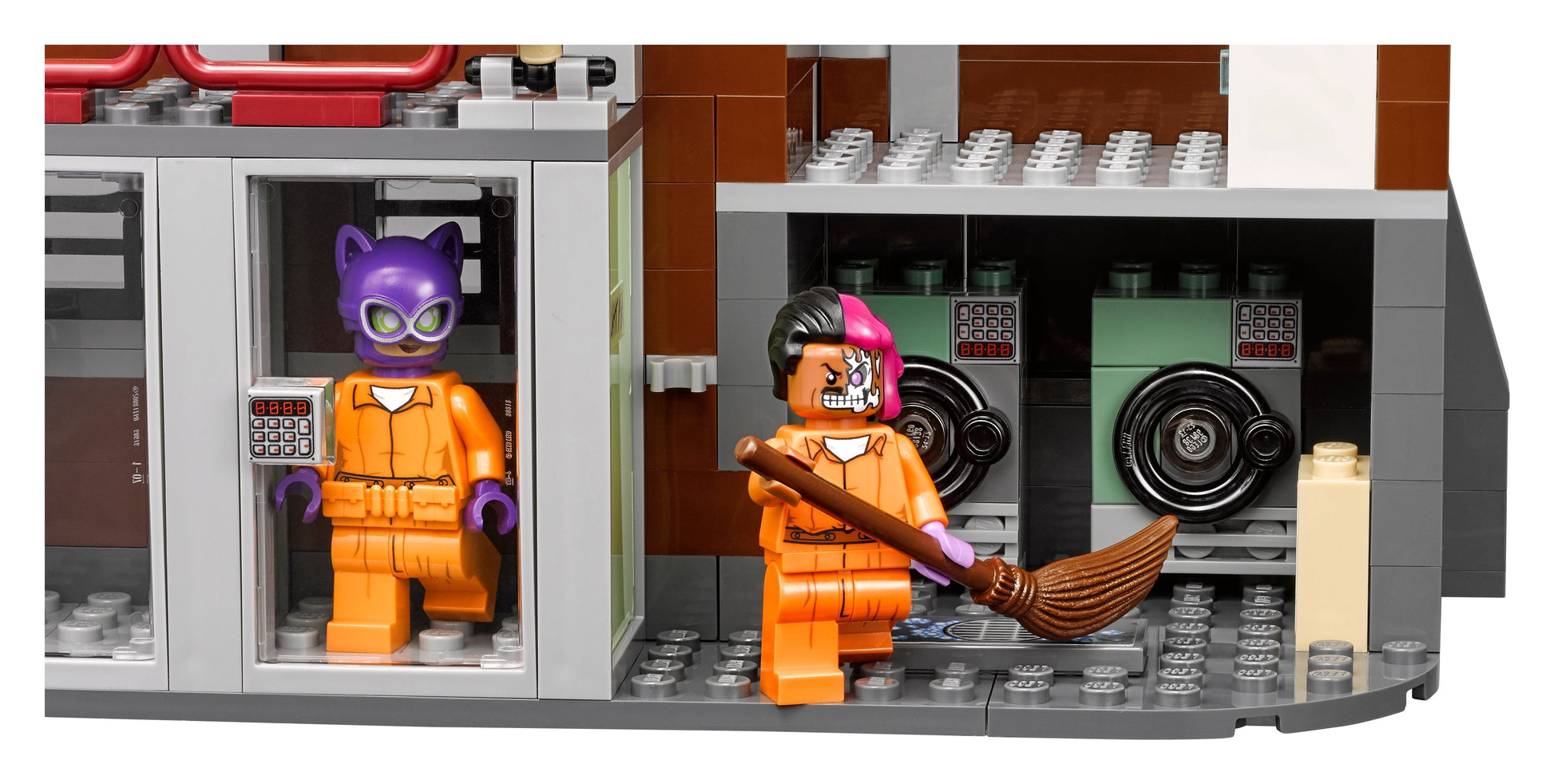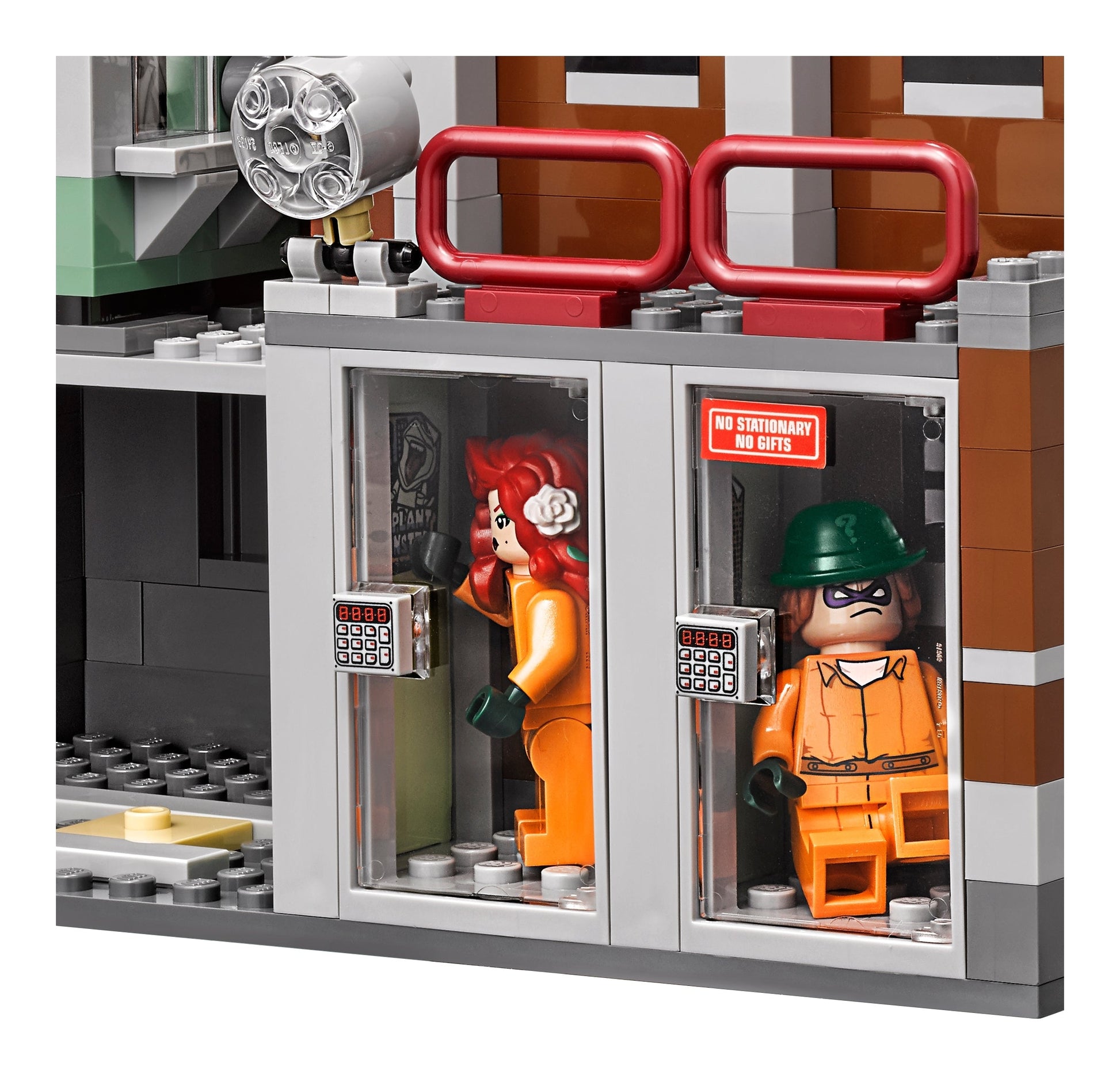 - This highly detailed set from THE BATMAN MOVIE features the massive Arkham Asylum model with many different areas—including Dr. Harleen Quinzel’s office, ward office, four cells, an ‘x-ray’ security scanner, canteen, visitors’ room and laundry room—plus a separate five-story lookout tower, police car and loads of play-inspiring accessories.