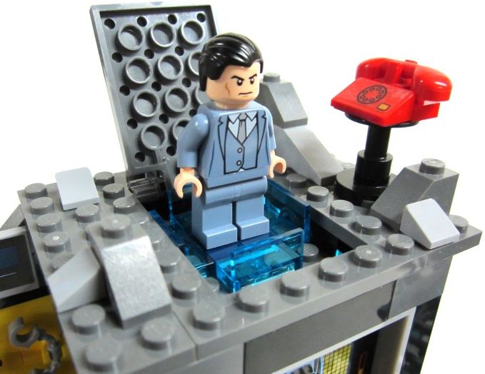 - Features Batcave, Banes drill tank, Batcycle, handcuffs, binoculars and weapons