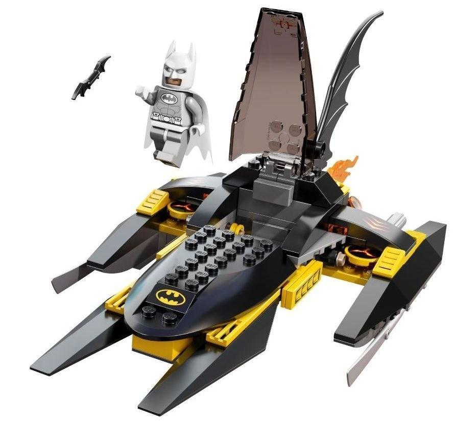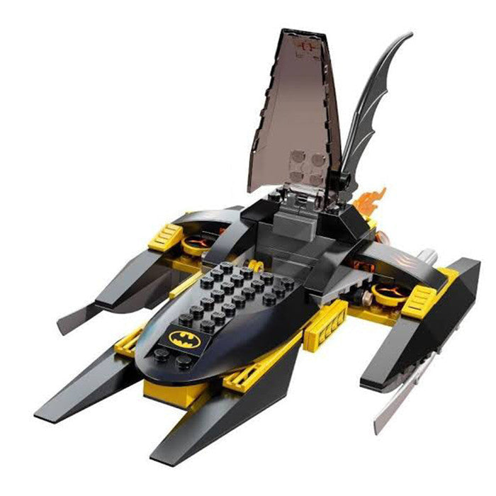 - Batboat features flick discs, deployable bombs, batwing fin element, exhaust flames and opening cockpit.