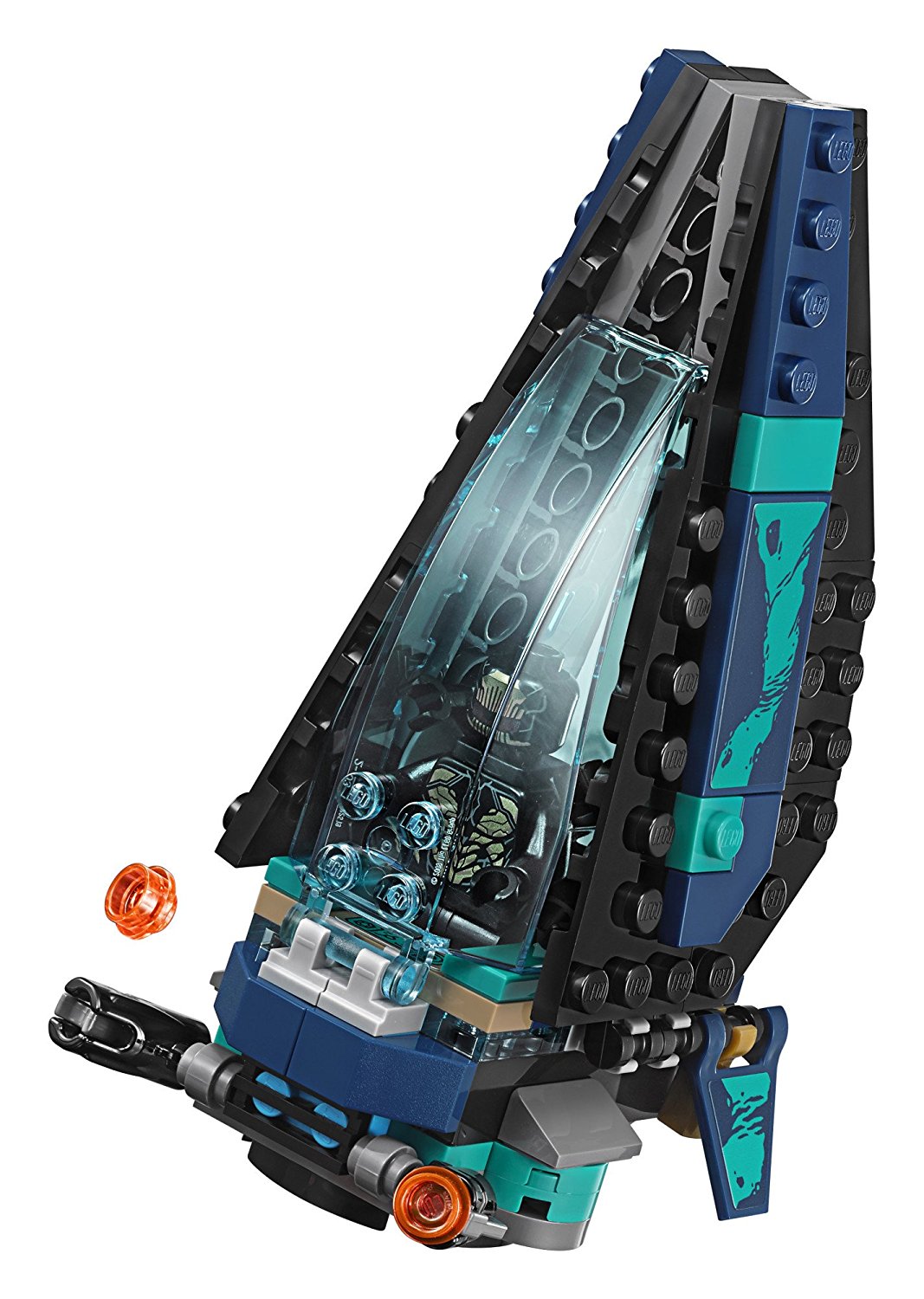 - Dropship features an opening dual minifigure cockpit with the Infinity Stone element on a stand, foldout sides and 2 stud shooters