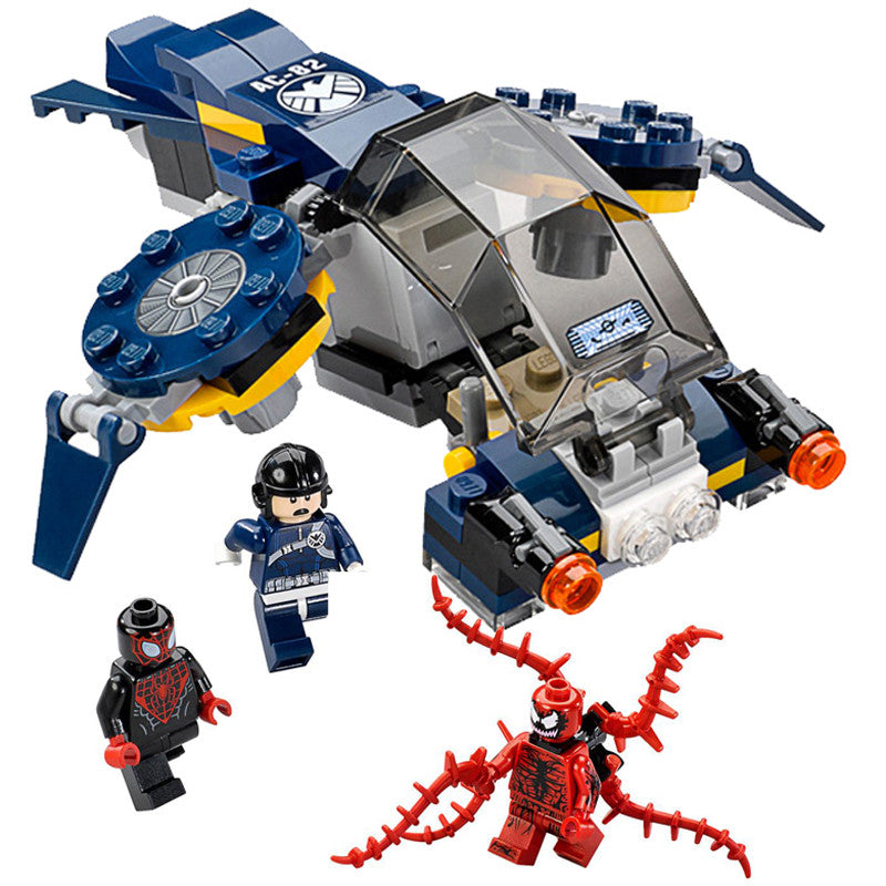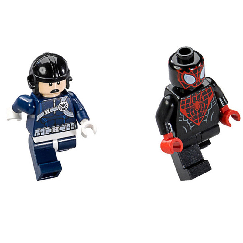 - Miles Morales Spider-Man minifigure is new for fall 2015; adjust the wings of the SHIELD jet flyer and launch into the sky