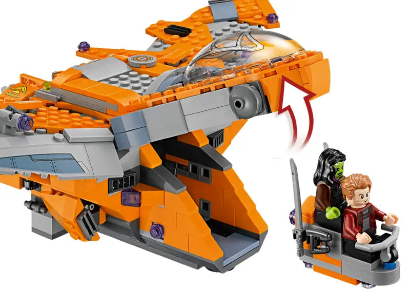 - Fly into conflict on an uncharted planet aboard The Guardians’ Ship with Iron Man, Star-Lord and Gamora in this Marvel Super Heroes Thanos: Ultimate Battle buildable set.
