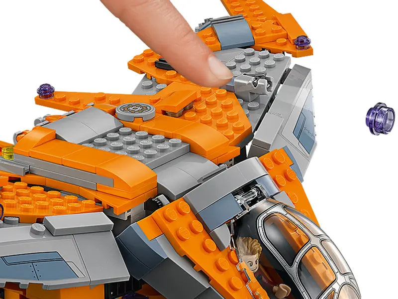- The Guardians' Ship features an opening cockpit for the space scooter, flip-up windshield, opening rear compartment with 2 minifigure seats, removable roof and space for Infinity Gauntlet and stand.