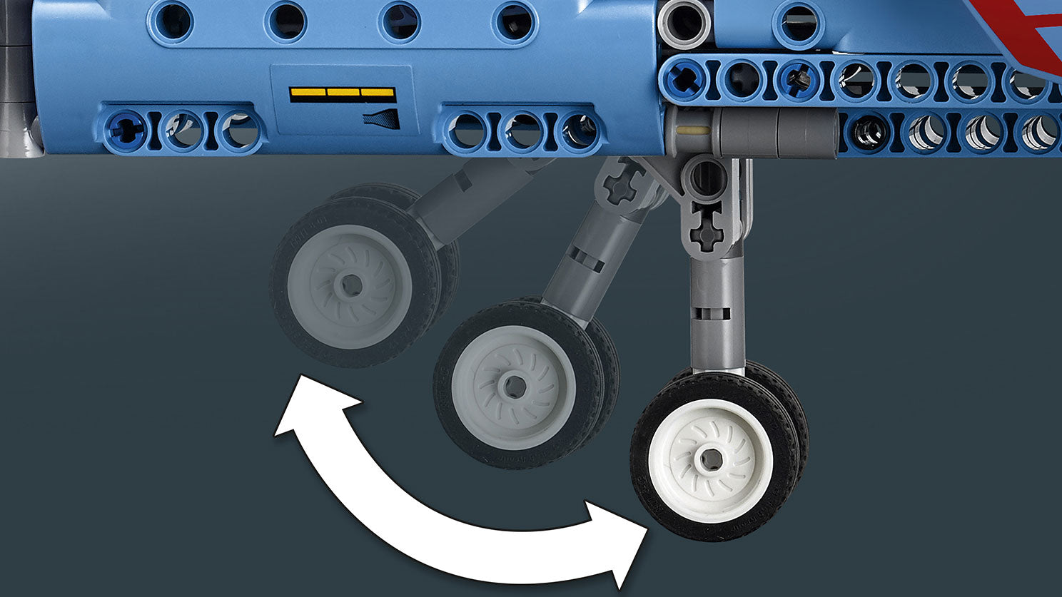 - Includes a Power Functions motor for an array of functions, including an adjustable jet nozzle, opening fuselage, retractable undercarriage and adjustable flaps, plus working front steering