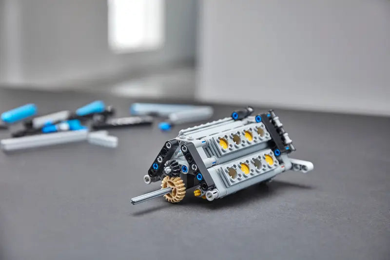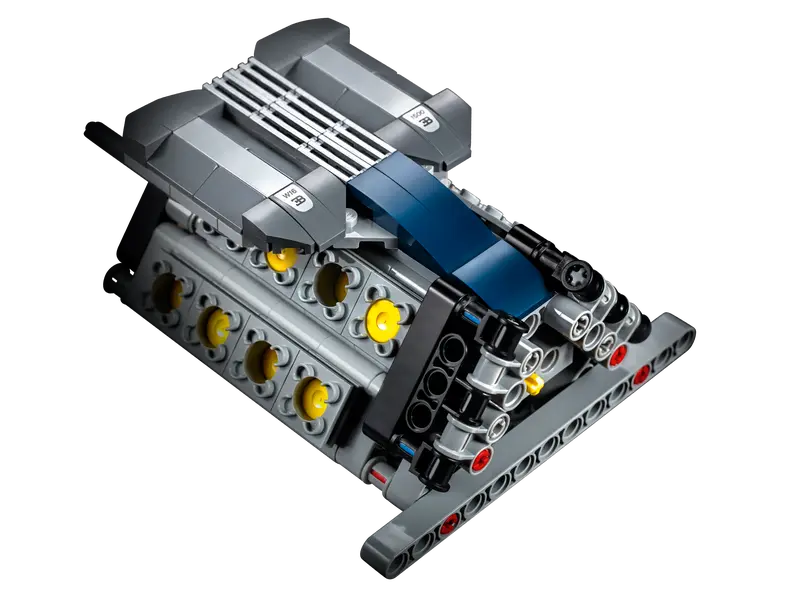 - Elaborate cockpit Featuring a Technic fully-functioning 8-speed gear box.
