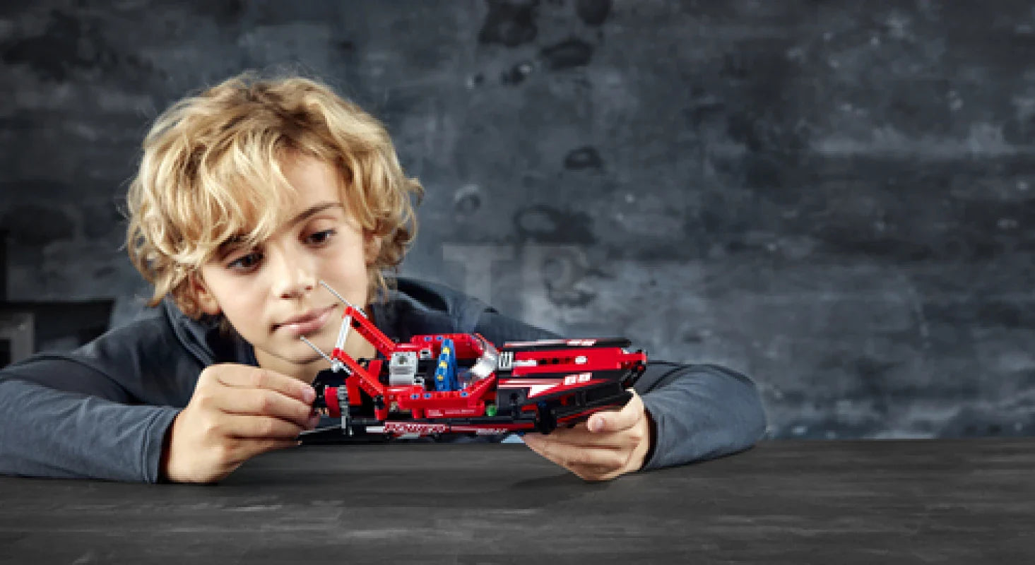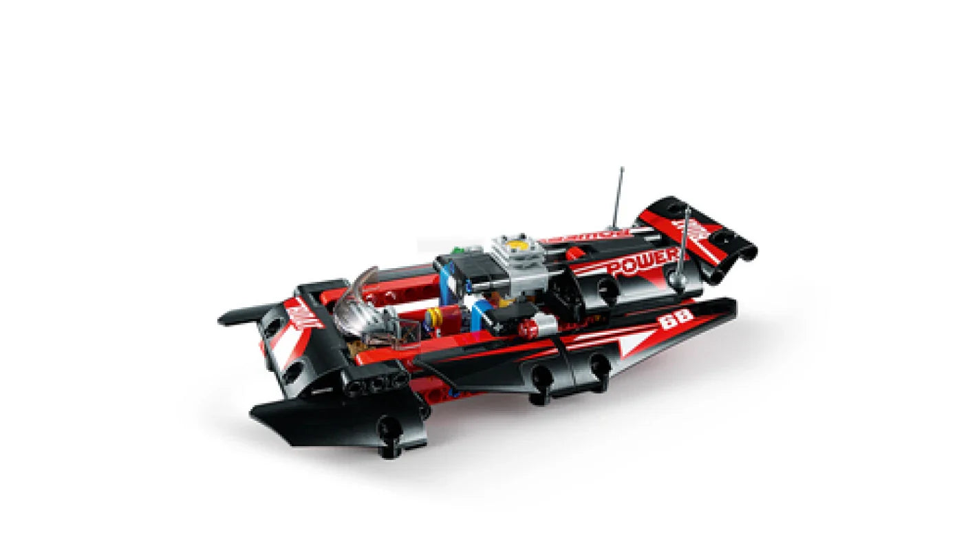- 2-in-1 Technic speed boat toy: rebuilds into a Hydroplane