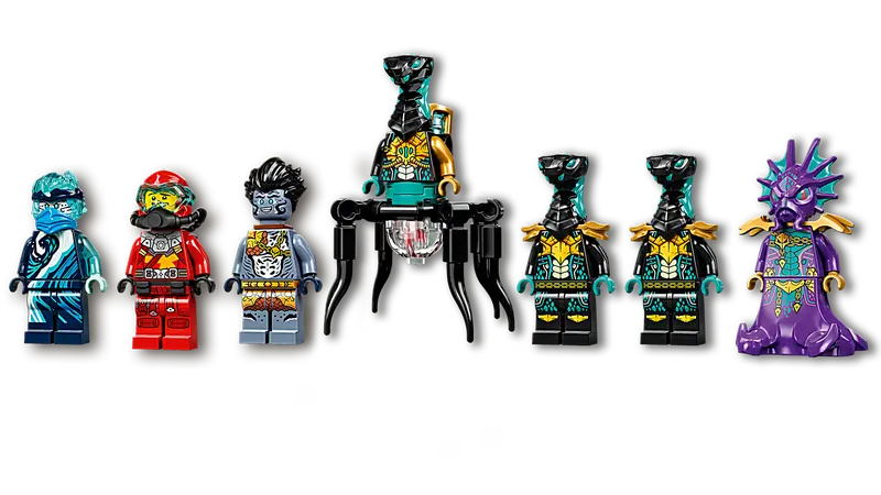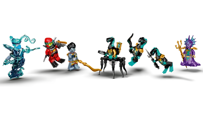 - Includes 7 minifigures: Scuba Kai, NRG Nya, Glutinous, Prince Kalmaar, Prince Benthomaar and 2 Maaray Guards to give kids all they need to stage death-defying battles under the sea.