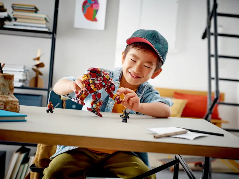 - The portable Hulkbuster mech action figure stands over 5 in. (15 cm) tall and makes a great addition to any Marvel building toy collection.