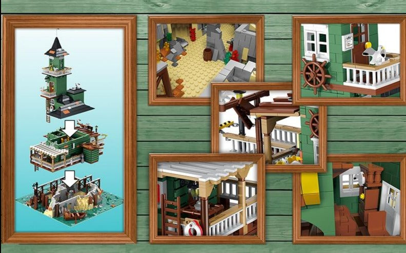 - Build the Lighthouse, with detailed exterior, shop and connected lookout tower with office and much more. Exterior features steps to the front and side doors of the store, railings, ventilator and assorted elements; including seagull and crab figures.