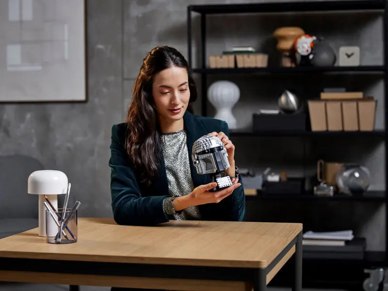 - Capture the sheen and replicate iconic features of Mando’s helmet and proudly display it on the brick-built stand with nameplate.