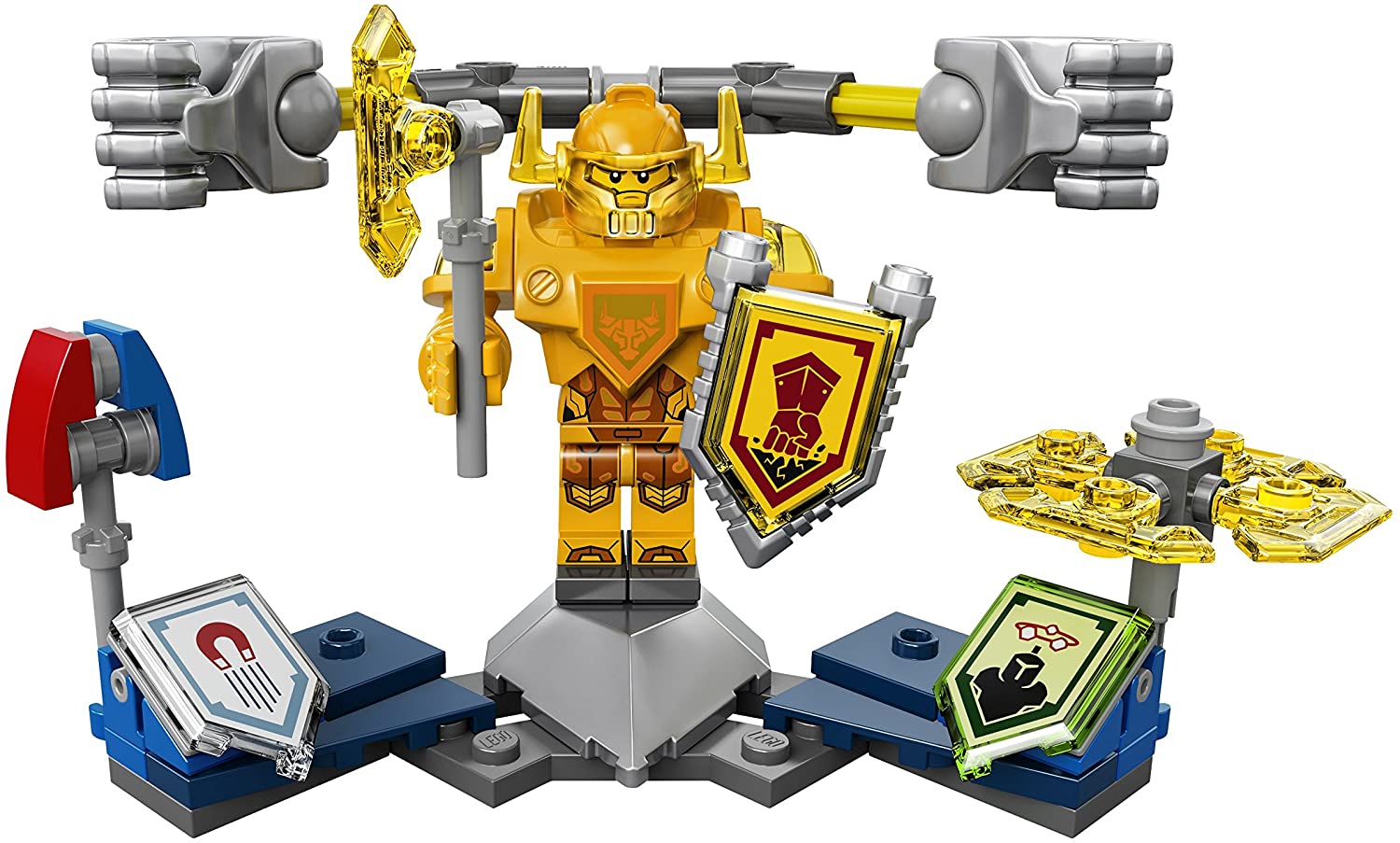 - This set features 3 scannable shields for NEXO Powers that provide unique battle skills in the digital game, and includes an Ultimate Axl minifigure.