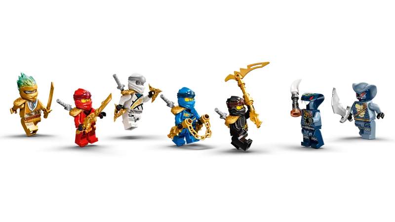 Look out for more special golden minifigures in 5 other NINJAGO sets including Tournament of Elements, Boulder Blaster, Fire Dragon Attack and X-1 Ninja Charger.