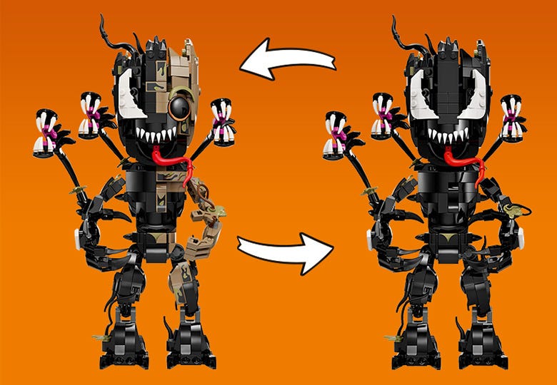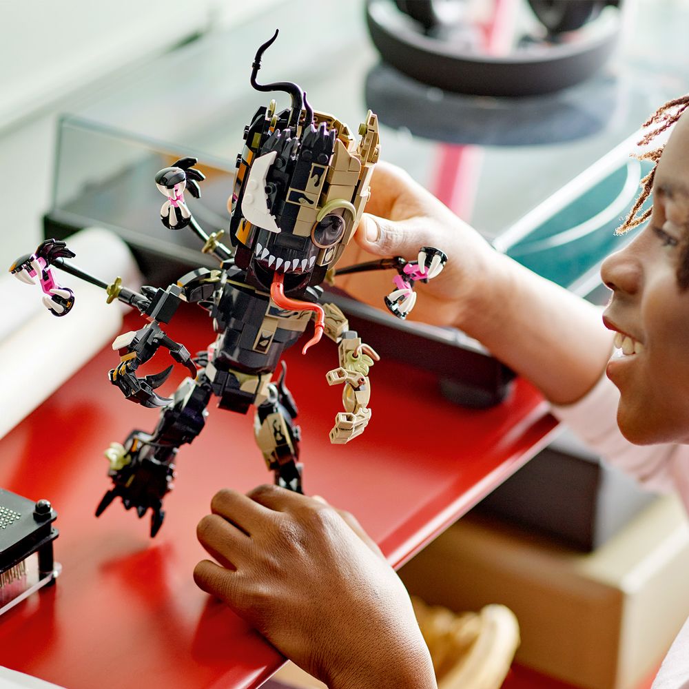 - Venomized Groot transformation –Marvel Venomized Groot puts reconfigurable fun into the hands of Marvel fans as they Venomize Groot more and more, brick by brick.