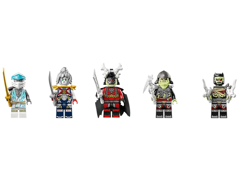 - Includes 5 NINJAGO minifigures: Zane and Pixal with ninja swords to fight against Bone Knight, Bone Warrior and Bone King.